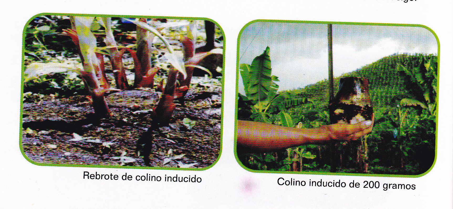 La afectación en el colino de plátano puede ser consecuencia de: Hongo, bacteria o insecto. Prepare el terreno ahoyado con cal y dos semanas después, sumerja el colino en bactericida, luego insecticida y luego fungicida y luego lo siembra.