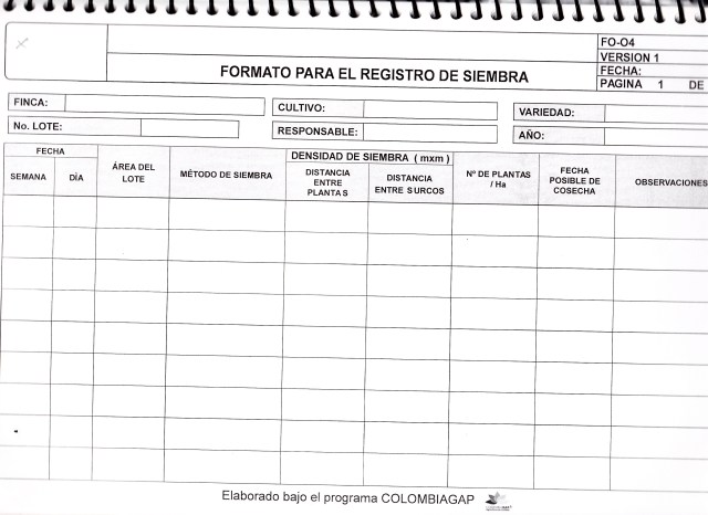 FORMATO  F-04  REGISTRO DE SIEMBRA