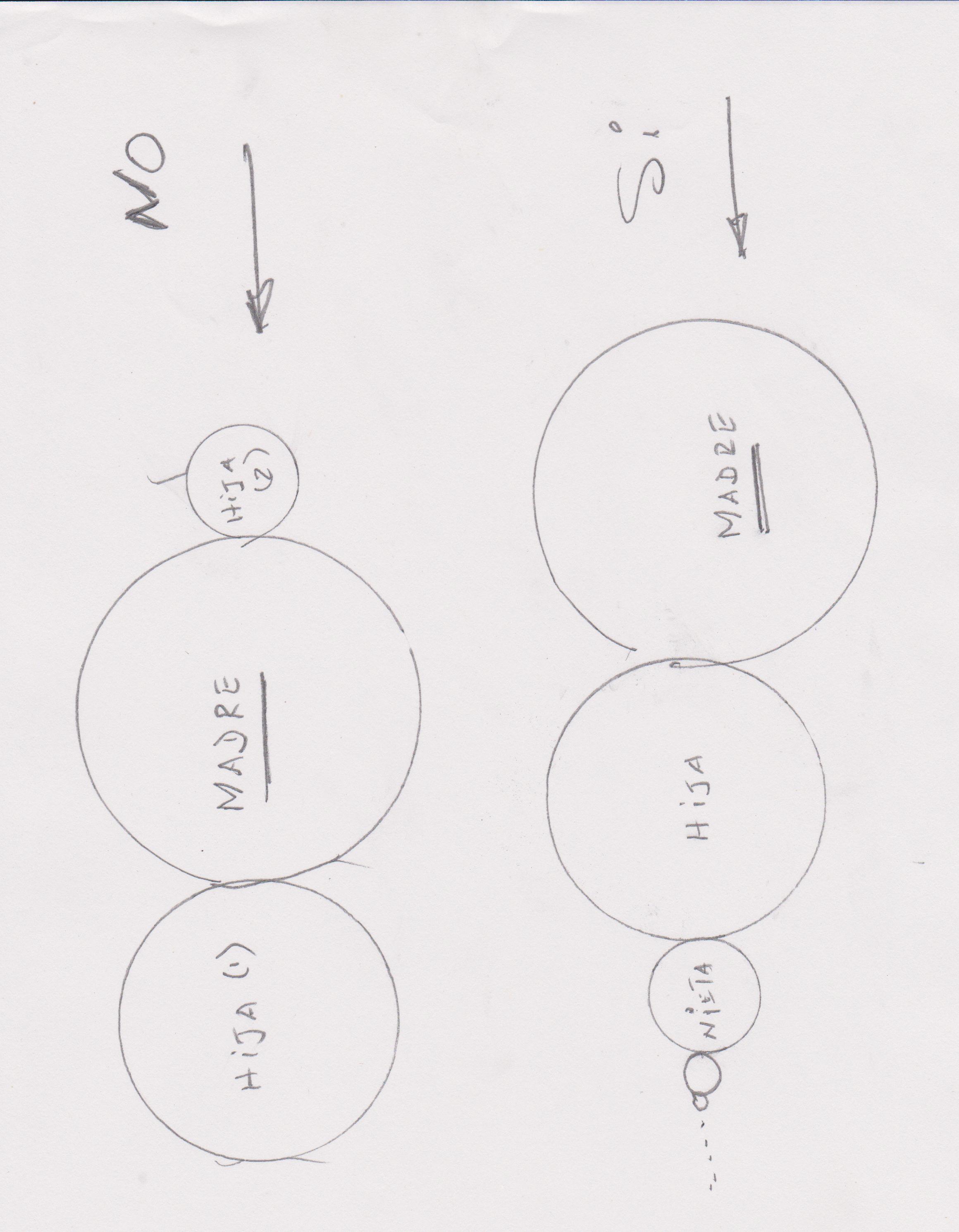En la figura superior aparece la «Madre» con dos hijas de diferente edad y esto no es sucesión, si se deja en el cultivo el rebrote pequeño, tendremos regresión, en la figura inferior aparece la verdadera sucesión
