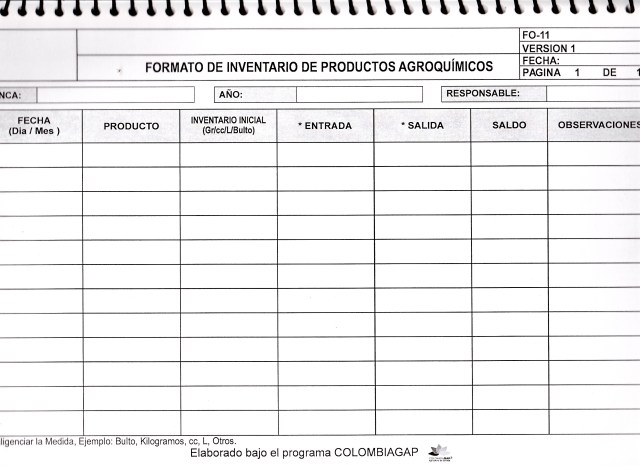 Tanto las sobredosis como las subdosis de agroquímicos son perjudiciales para la buena marcha de los cultivos. Con la primera, estamos afectando el medio ambiente y con las segunda estamos creando resistencia de las plagas a las moléculas o principios activos de los plaguicidas.  los inventarios de los agroquímicos, sirven para comprobar que no existen ninguno de los problemas anteriores.  Este es el formato recomendado, pero sugiero que se lleve un kardex de cada producto. hoy los agroquímicos de nueva generación son de alto costo, algunos hasta U$600 el litro y su control, es imperativo para la buena salud de nuestro bolsillo.