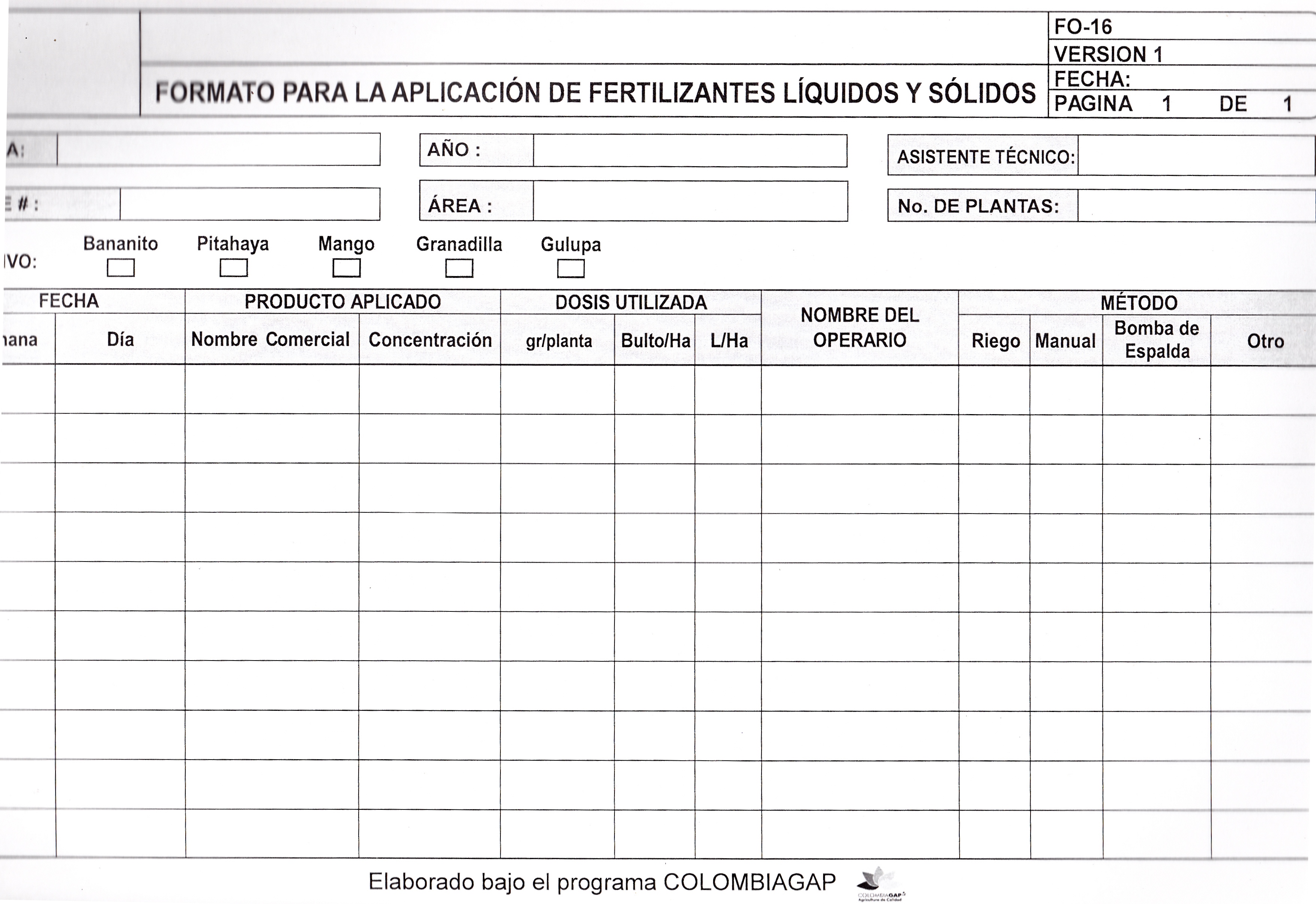 FORMATO F-17 APLICACIÓN DE FERTILIZANTES SÓLIDOS Y LÍQUIDOS