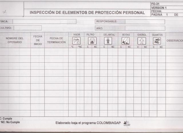 Las labores culturales y de poscosecha deben ser llevadas a cabo bajo medidas de seguridad normativas y acompañdas de los equipos adecuados. Estos equipos deben ser revisados peródicamente para comprobar su buen estado. El diligenciamiento del Formato que a continuación publicamos, comprueba la sujeción a la norma.