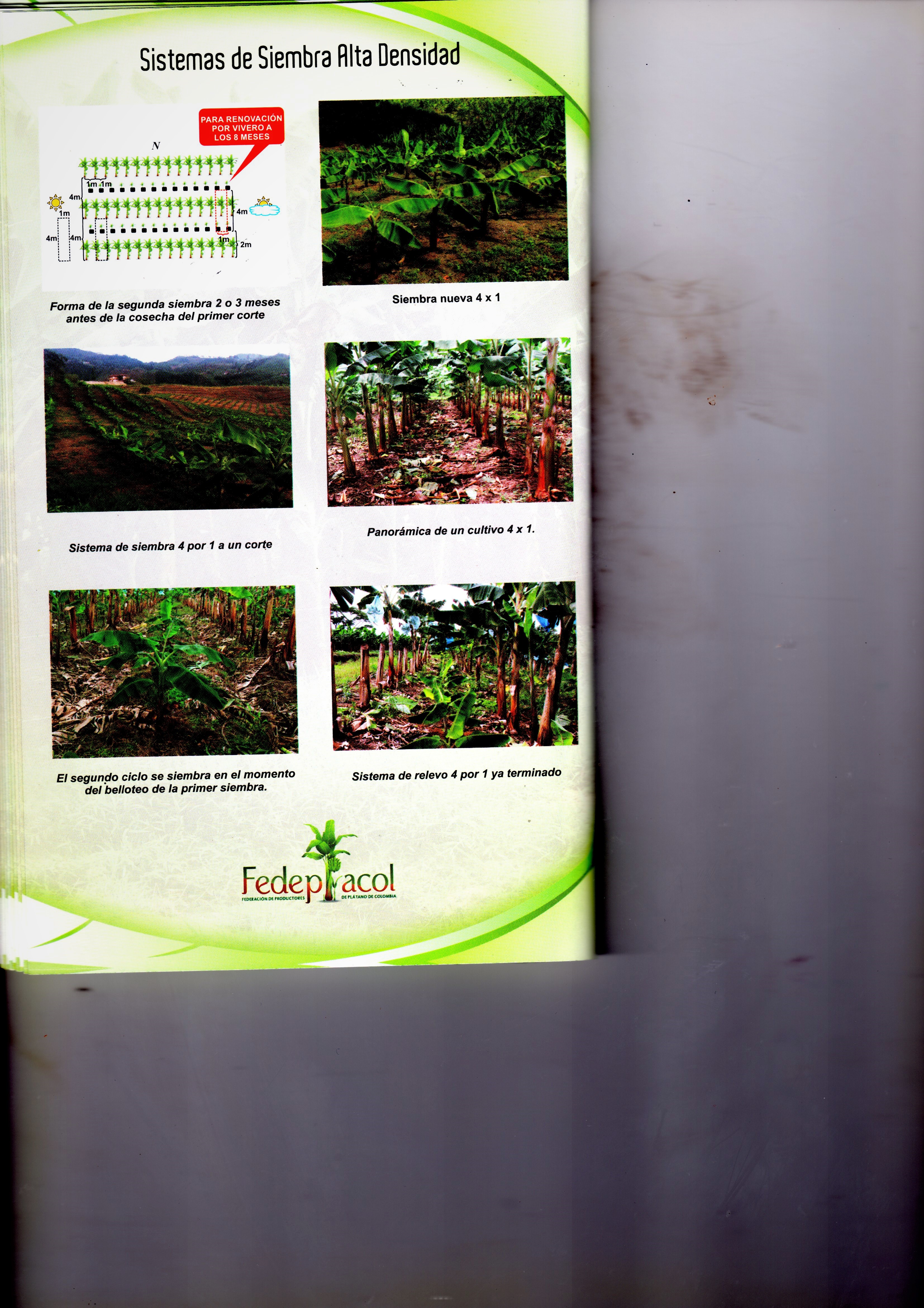 Existen muchas normas de siembra para plátano, pero  cuando hablamos de alta densidad, nos referimos a monocultivo, con relevo a un solo corte y a 5.000 plantas por hectárea .  Es necesario que el agricultor conozca su oferta ambiental para que pueda planificar sus parcelas y así minimizar el lucro cesante a la vez que consulte su capacidad financiera.  En resumen, siembre solo lo que pueda hacer bien con lo que tiene en ahorro.