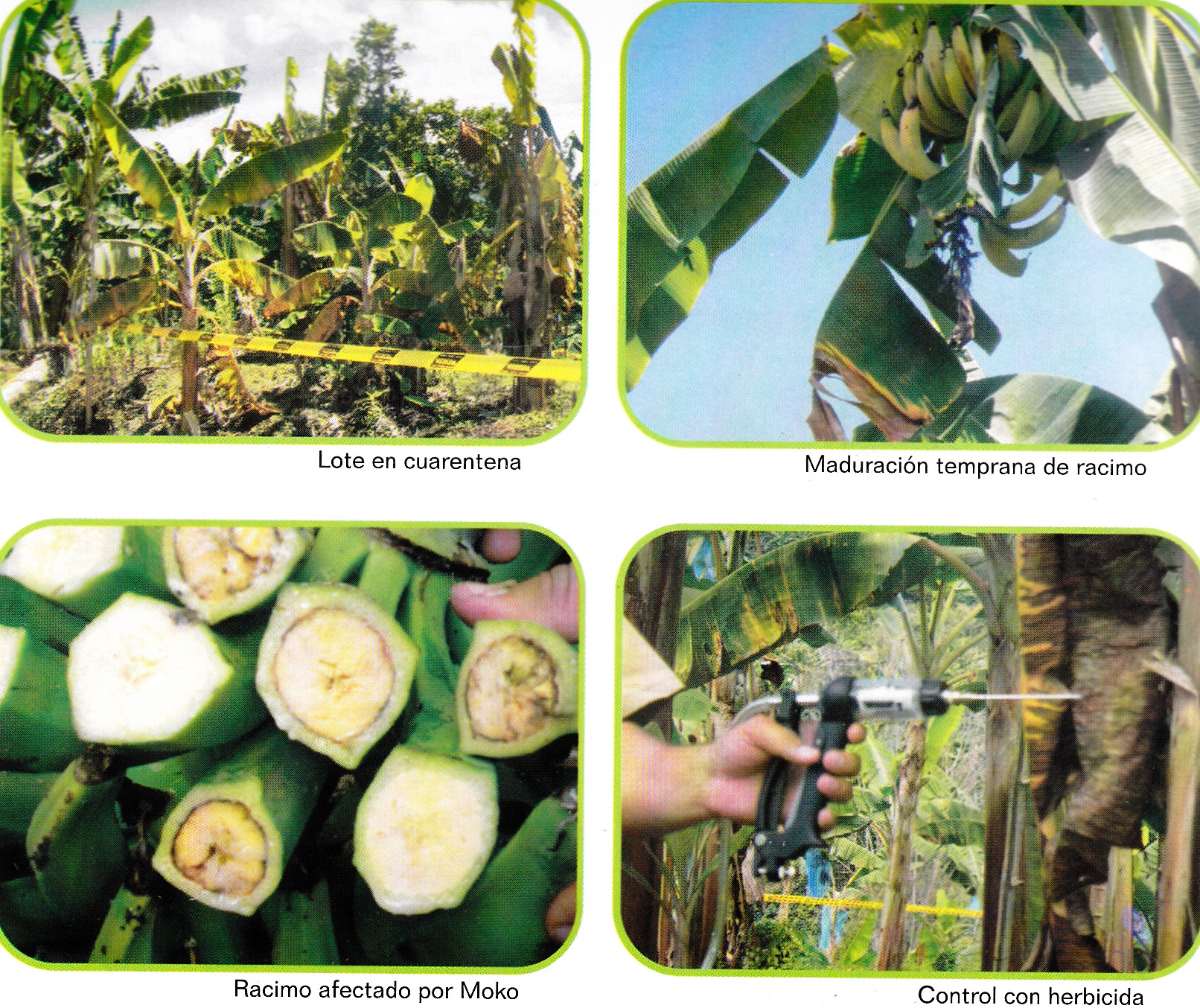 Si se presenta la enfermedad, se recomienda dar aviso a la autoridad agrícola y aislar el sitio, inyectar la planta con glifosato, cuando se marchite, picar la planta, asperjar con bactericida, encalar profusamente con cal hidratada no retirar del sitio el material para no contaminar al paso otras plantas y señalar aislando el sitio.